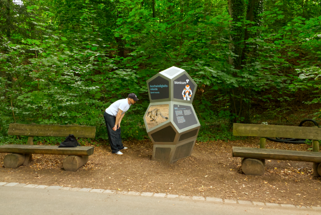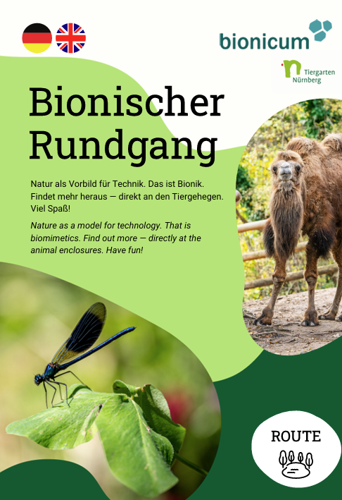 The Bionic Tour is a journey of discovery through Nuremberg Zoo. You can explore more than 20 stations at the animal enclosures independently during your visit to the zoo. We are happy to offer guided tours of the Bionic Tour and convey selected topics from nature and technology – tailored to the target group and easy to understand.